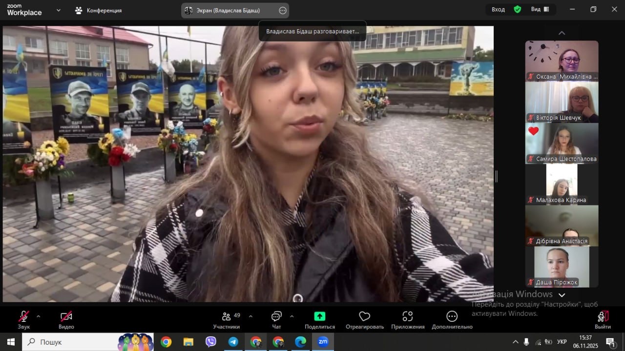 Одна із сторінок заходу була присвячена повномасштабній агресії росії. З сумом і біллю студентка групи 104, Богомаз Маргарита, розповіла про життя під окупацією.