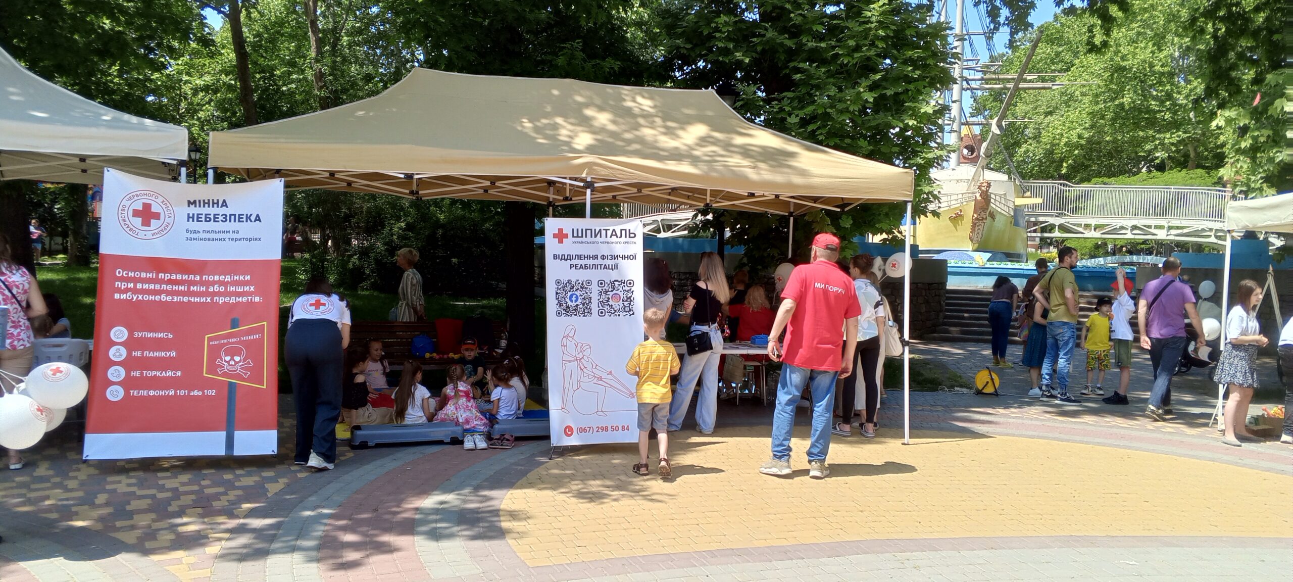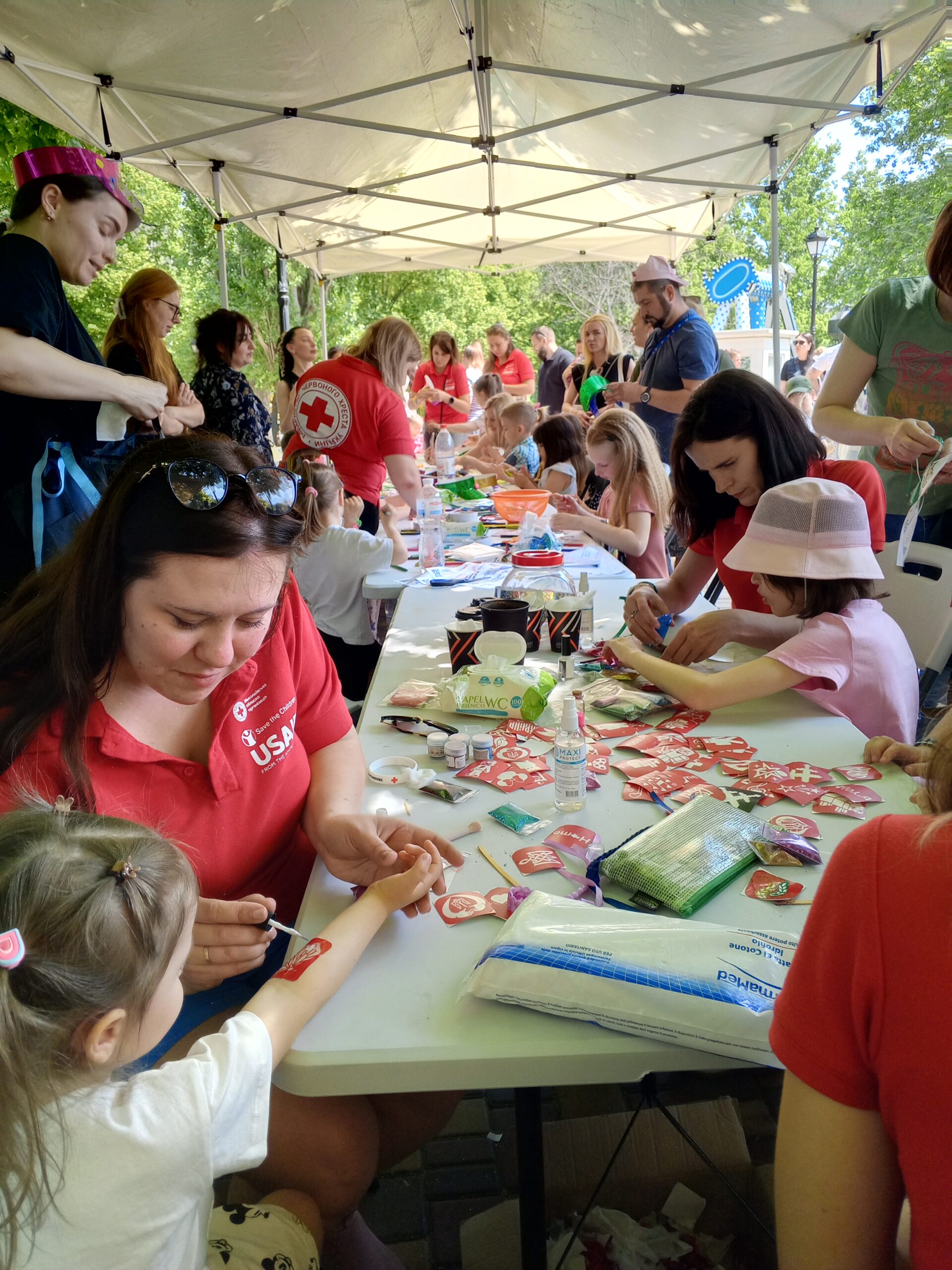 пізнавальні куточки, де знайомили з напрямками роботи ТЧХУ — від першої допомоги до гуманітарної підтримки.