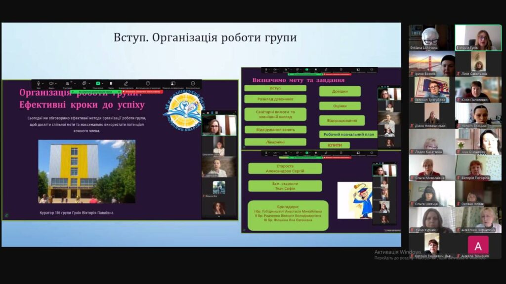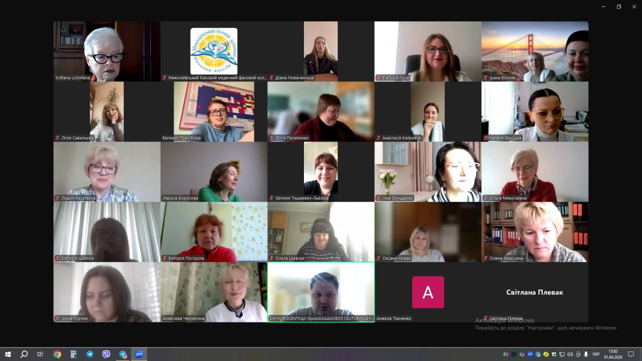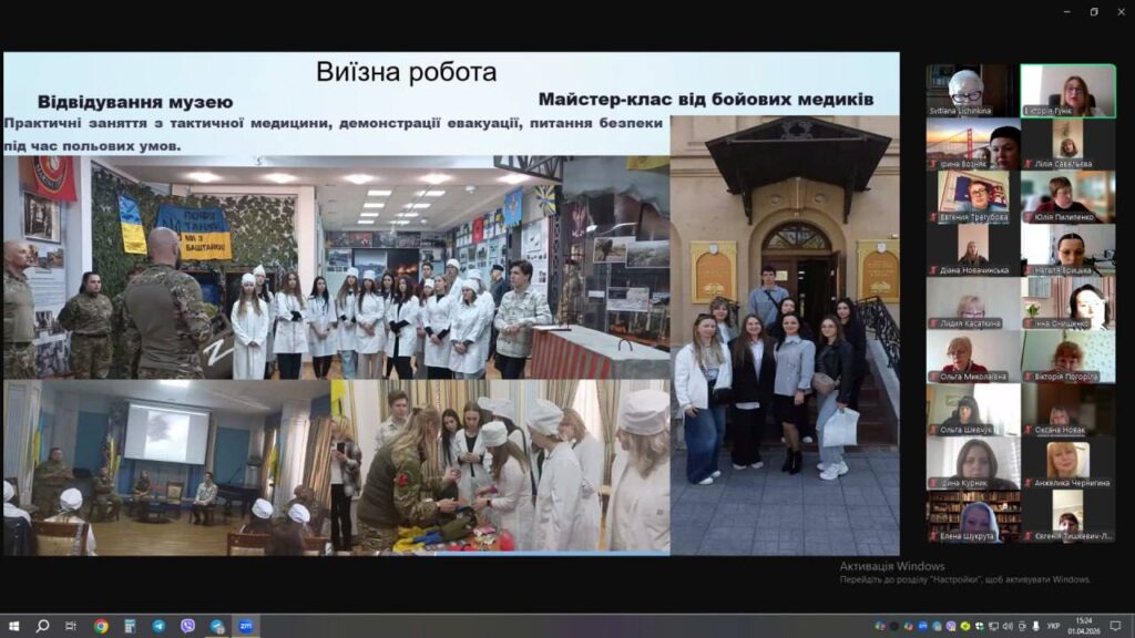 2 квітня відбулась нарада кураторів академічних груп. В її роботі взяла участь представник Міжнародного комітету порятунку (SRC) Лариса Борисова. Вона розповіла про діяльність гуманітарної організації та її можливості в наданні юридичних послуг, медичної та психологічної підтримки. Кураторам були запропоновані шляхи створення безпечного простору для навчання й відновлення емоційної й психологічної стабільності для вразливих категорій під час війни.Змістовними були звіти кураторів груп 216 і 214 Гунік Вікторії Павлівни і Чернігіної Анжеліки Борисівни. На досвіді своєї роботи доповідачі продемонстрували ефективні кроки до успіху в організаційно-виховній роботі з здобувачами освіти. Патріотичне виховання , академічна доброчесність та студоцентризм в медичній освіті, волонтерська діяльність, запобігання вчиненню терористичних та диверсійних актів, цифрова та цивільна безпека – це коло тих питань, які стали темами заходів в академічних групах.Кураторам були надані рекомендації з організації і проведення зустрічей, бесід до 40-х роковин Чорнобильської катастрофи. Також присутні ознайомились з планом проведення моніторингу ОПП з залученням здобувачів освіти.