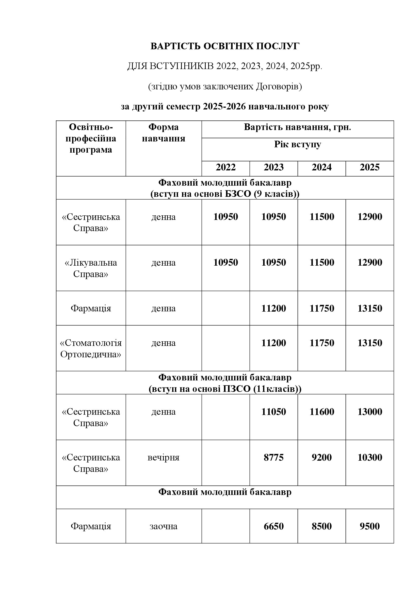 Плата за навчання за ДРУГИЙ семестр 2025/2026 навчального року вноситься студентами до 5 СІЧНЯ 2026 року