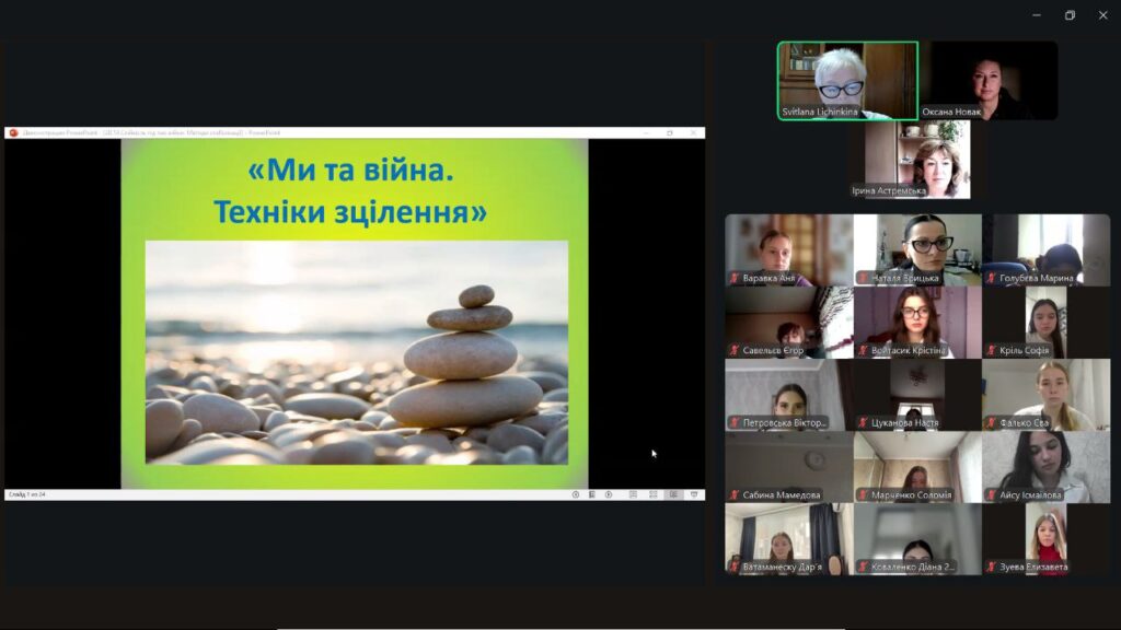 28 жовтня в коледжі доктором психологічних наук, професором кафедри психології Чорноморського національного університету імені Петра Могили Астремською Іриною Володимирівною було проведено семінар – практикум «Ми та війна. Техніка зцілення». Учасниками семінару стали студенти мед сестринських відділень – груп 203, 204, 206. Ірина Володимирівна ознайомила здобувачів освіти з основними техніками саморегуляції та інструментами, які допомагають керувати своїми емоціями. Учасники практикуму навчилися виробляти емоційну стійкість, вміння заспокоїтися, повернутися до себе, зупинити панічну атаку. Студенти дізналися про опори, на які можна спиратися у ситуаціях кризи та стресу. Познайомилися з каналами соціальної підтримки, оформили картку власних ресурсів. Малювання квітки самопочуття дало змогу визначити речі, людей, діяльність, які дають позитивне емоційне задоволення.