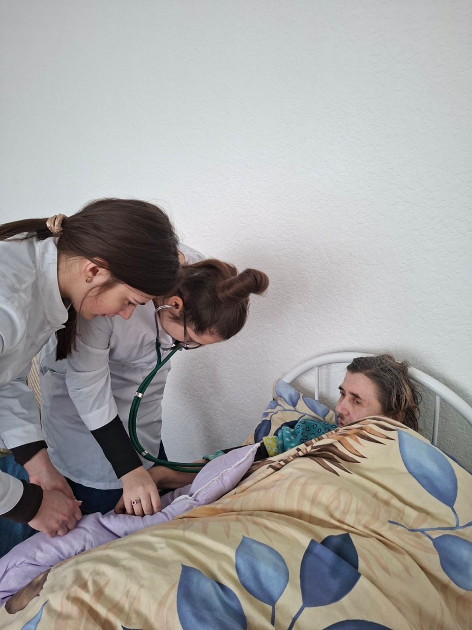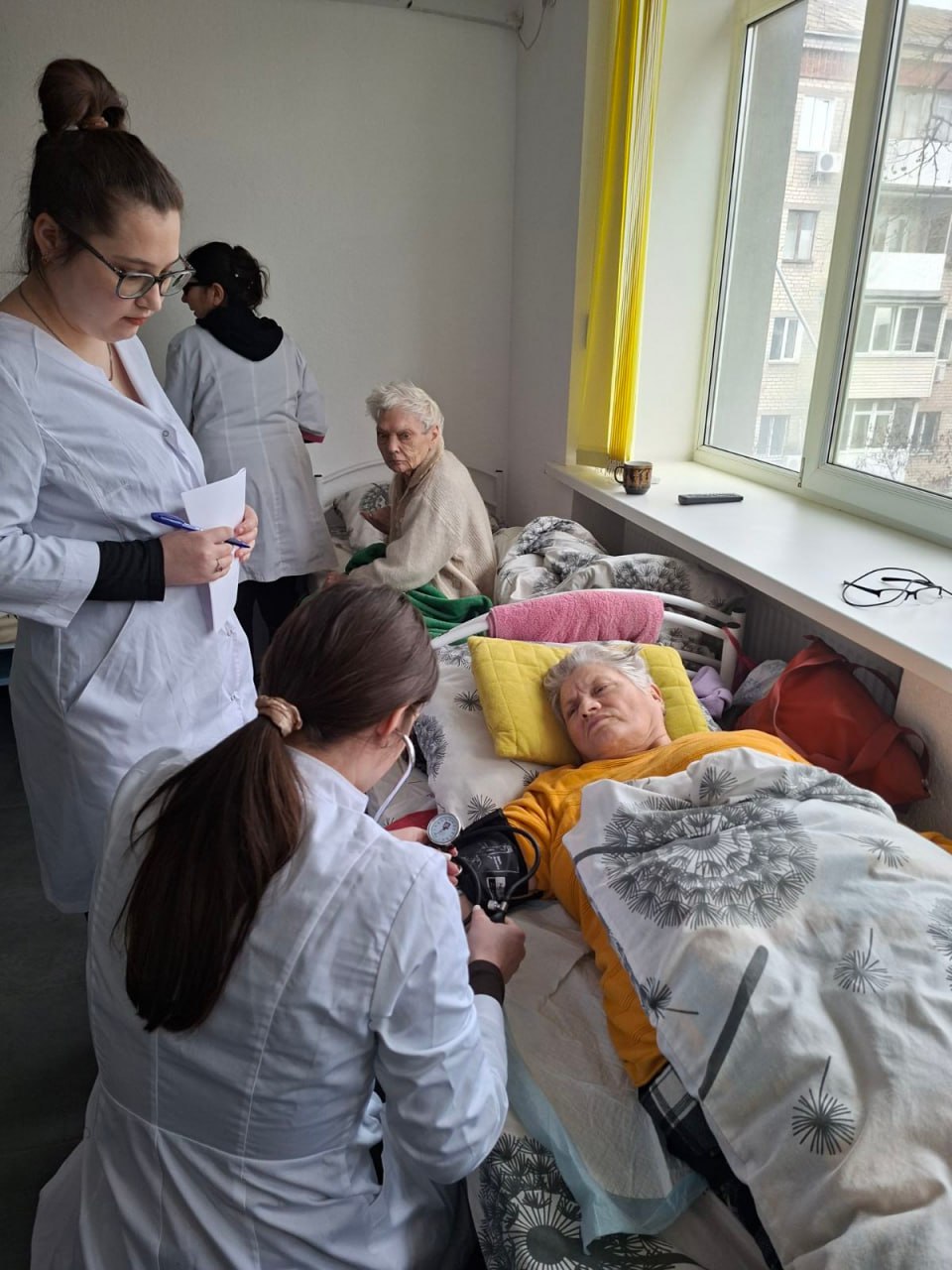 Головною метою заходу була інтеграція теоретичних знань у практичну діяльність та формування професійних компетентностей майбутнього медичного працівника. Студентки вимірювали артеріальний тиск, сатурацію, температуру, виконували експрес-тести для виявлення прихованих інфекційних ризиків, проводили прийом та огляд пацієнтів. Проведення заняття саме в такому форматі допомогає виходити за межі навчальних аудиторій та фантомів, стикаючись із реальним клінічними випадками та людськими долями. Робота в пансіонаті поєднала в собі технічні маніпуляції (вимірювання життєвих показників, проведення експрес-тестів, тощо) та гуманітарний аспект (спілкування, підтримка). Пансіонат отримав додаткову допомогу у догляді за підопічними, а студенти — безцінний практичний досвід.